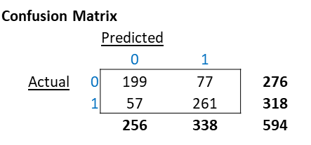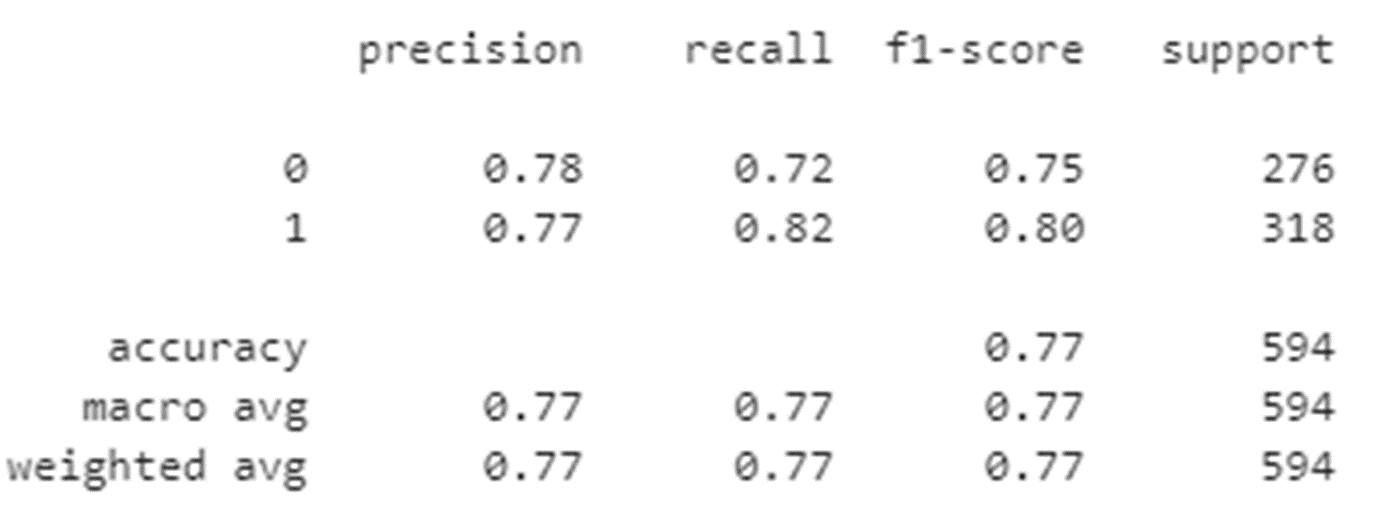The algorithm was able to classify 83% of the observations accurately. This metric is called ‘accuracy’.