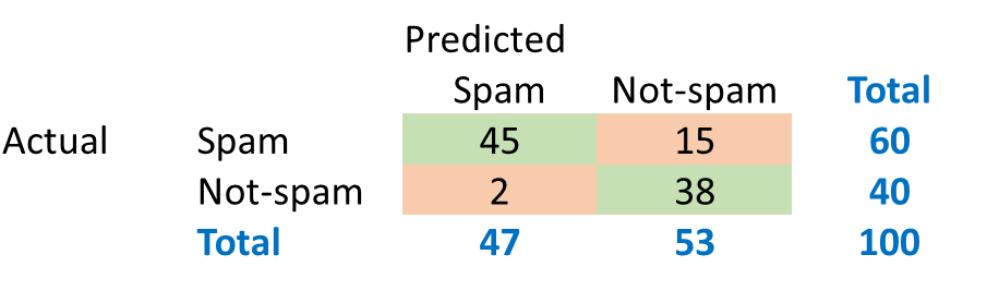 In order to evaluate classification models, we create what is called a Confusion Matrix. Understanding the Confusion Matrix is key to evaluating classification models. Consider the prediction results produced by a spam classifier:
