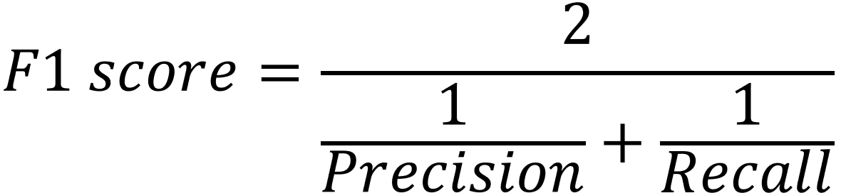 \(F1 score = 2/(1/Precision + 1/Recall)\)