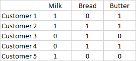 df| Milk | Bread | Butter | |