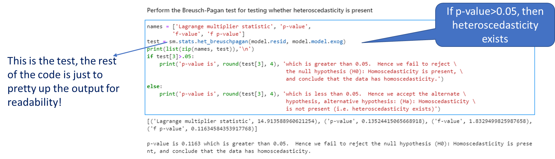 We want to create a model with an intercept. In Statsmodels, that requires us to use the function add_constant as shown below.