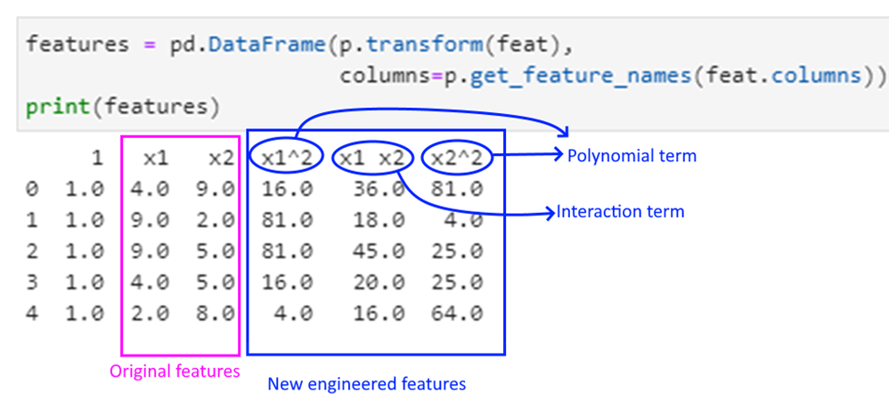 # Let us check if the shape of the different dataframes is what we would expect them to beprint('Shape of the original mtcars dataset (rows x columns):', mtcars.shape)print('Shape of the X dataframe, has a new col for constant (rows x columns):', X.shape)print('Shape of the features dataframe (rows x columns):', features.shape)