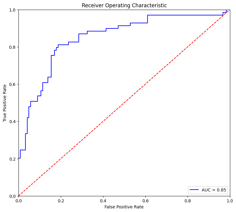 Next, we evaluate the model by studying the confusion matrix and the classification report. Below, we use a threshold of 0.50 to classify disease as 1 or 0. By moving this threshold around, you can control the instance of false positives and false negatives.