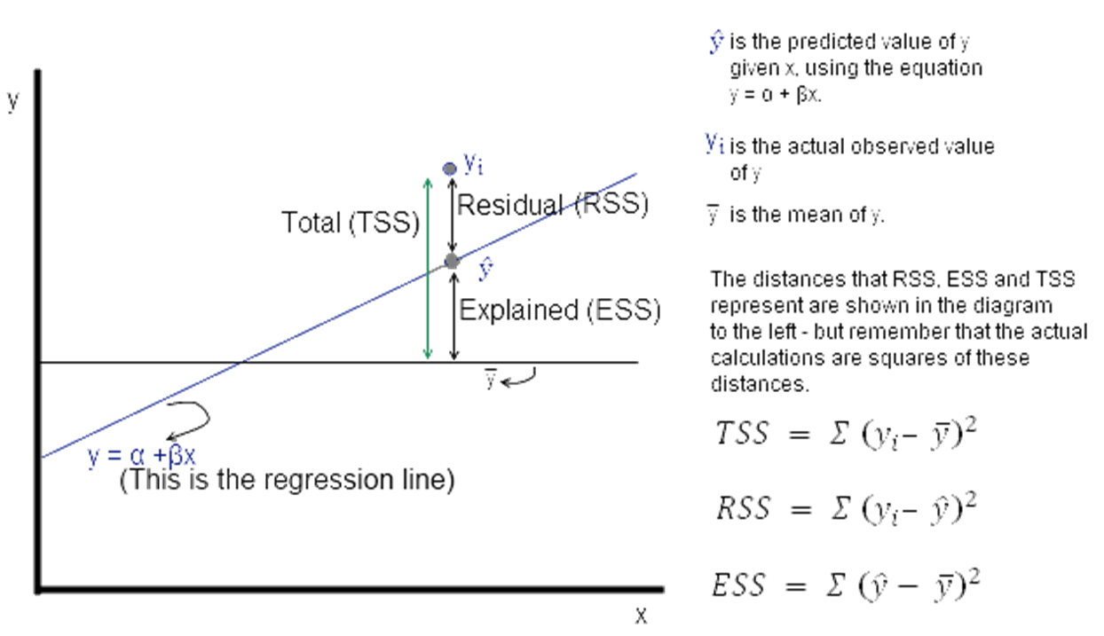 The ‘predicted’ value of \(y\) is provided to us by the regression equation. This is unlikely to be exactly equal to the actual observed value of \(y\).