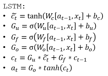 LSTM is a generalization of GRU. The way it differs from a GRU is that in GRUs, \(c ^ {<t>}\) and \(a^{<t>}\) are the same, but in an LSTM they are different.