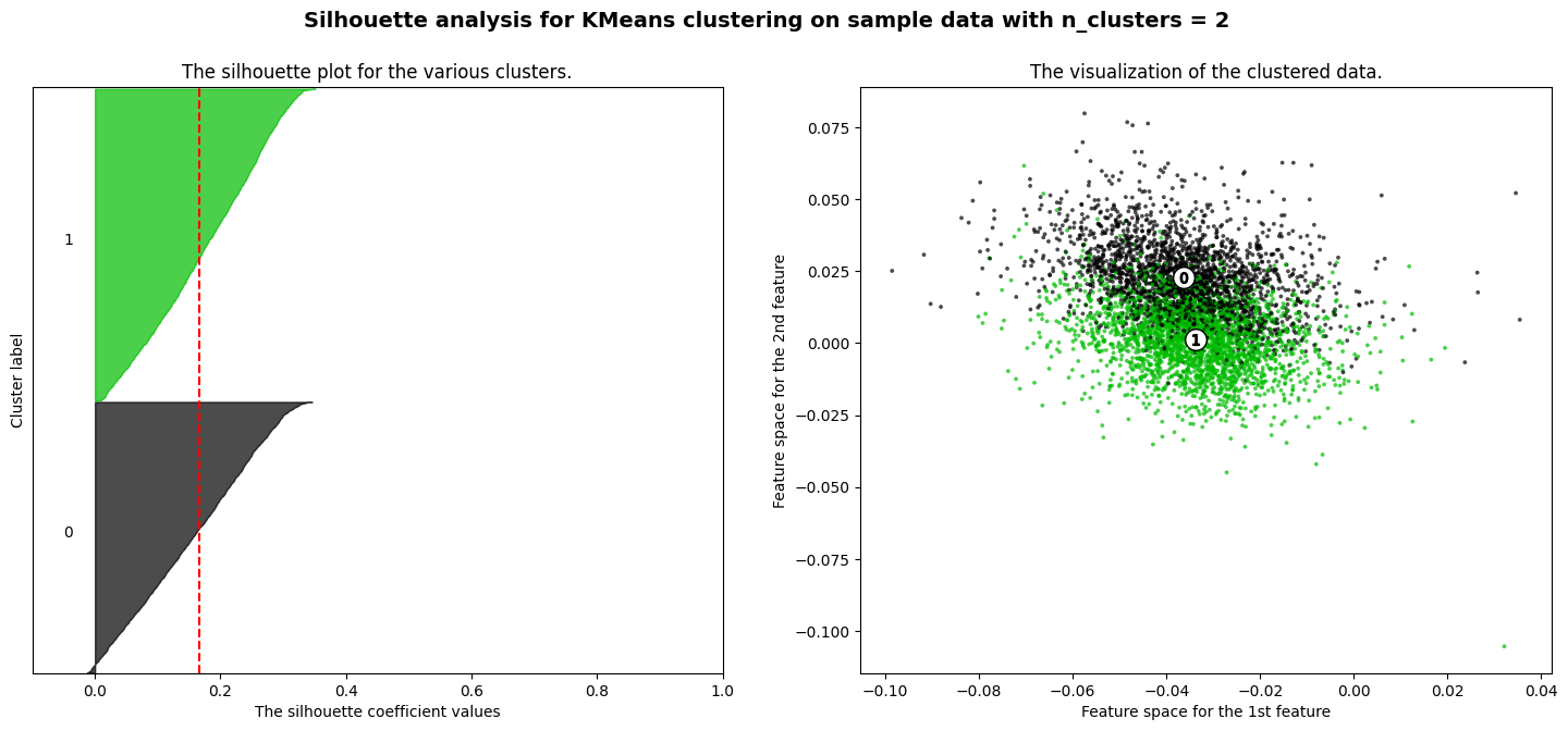 For n_clusters = 2 The average silhouette_score is : 0.1657680778925936
