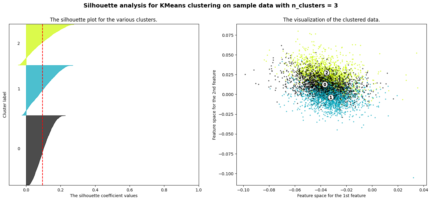 For n_clusters = 3 The average silhouette_score is : 0.09577679071788392