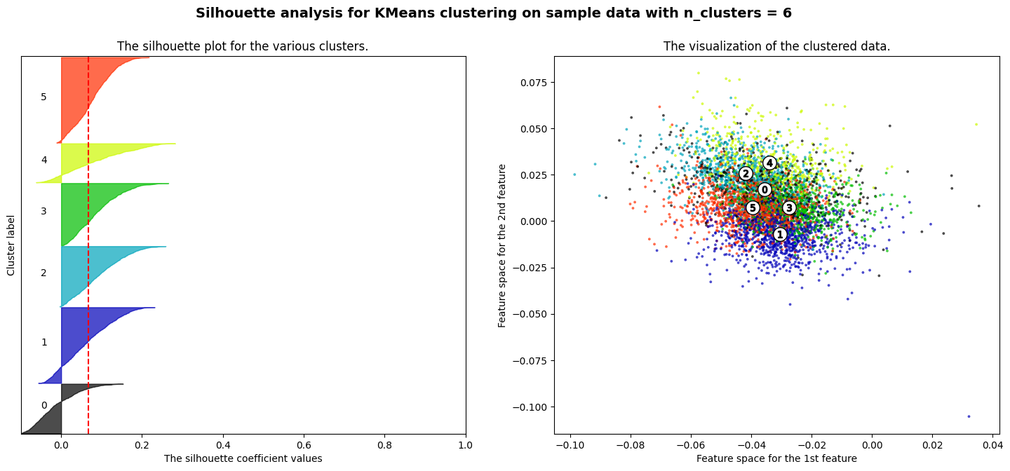 For n_clusters = 6 The average silhouette_score is : 0.06783325007157791